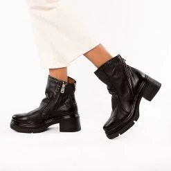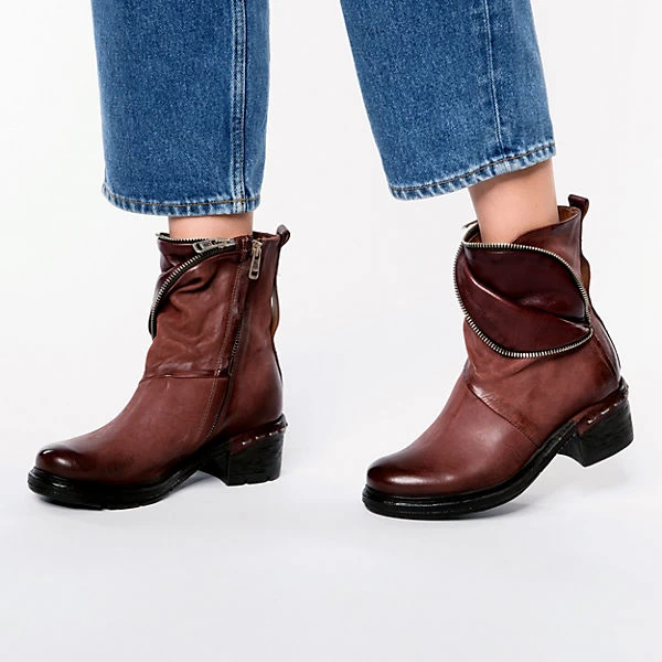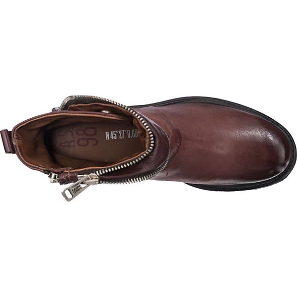 Diese stilvollen Stiefeletten aus dem Hause A.S.98 unterstreichen jedes Outfit. Ein modischer Look kombiniert mit hohem Komfort gelingt dank des mittelhohen Blockabsatzes. Echtes Rindsleder zeichnet dieses Modell aus. Das Fußbett besteht aus atmungsaktivem Echtleder, das ein angenehmes Trageerlebnis unterstützt. Die Schuhe sind mit einem Reißverschluss versehen.