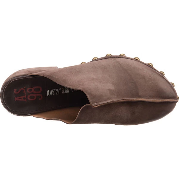 Für ein gemütliches Tragegefühl: Die Clogs von der Marke A.S.98. Das Fußbett besteht aus atmungsaktivem Echtleder, das ein komfortables Trageerlebnis begünstigt. Der dezente Blockabsatz bietet einen modischen Look. Die Schuhe begeistern mit dem Obermaterial aus echtem, hochwertigem Rindsleder. Das Modell kommt ohne jeglichen Verschluss aus, sodass ganz bequem hineingeschlüpft werden kann.