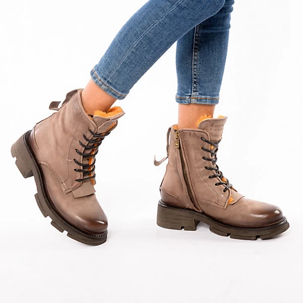 Die trendig gestalteten Schnürstiefeletten der Marke A.S.98 unterstreichen Ihren Look. Der Blockabsatz verbindet einen femininen Auftritt mit angenehmem Komfort. Das Obermaterial zeichnet sich durch das hochwertige, echte Rindsleder aus. Eine ideale Anpassung an den Fuß wird durch den Schnürverschluss gewährleistet, der zusätzlich durch einen praktischen Reißverschluss ergänzt wird. Das Futter aus Lammfell zeigt sich äußerst wärmend und wirkt außerdem feuchtigkeitsausgleichend.