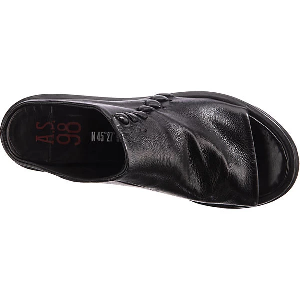 Ideal zu vielen verschiedenen Anlässen: Die alltagstauglichen Pantoletten aus dem Hause A.S.98. Hochwertiges Rindsleder zeichnet dieses Modell aus. Für ein komfortables Trageerlebnis besteht das Fußbett aus Echtleder. Der dezente Blockabsatz sorgt für einen modischen Auftritt. Das Schuhpaar kommt ohne Verschluss aus, sodass ganz einfach hineingeschlüpft werden kann.
