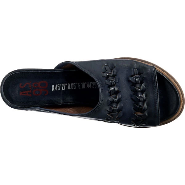 Die alltagstauglichen Pantoletten von A.S.98 eignen sich ideal für jeden Tag. Der modisch aktuelle Blockabsatz sorgt für einen dekorativen Akzent. Hochwertiges Rindsleder zeichnet dieses Modell aus. In die Schuhe kann schnell hineingeschlüpft werden.