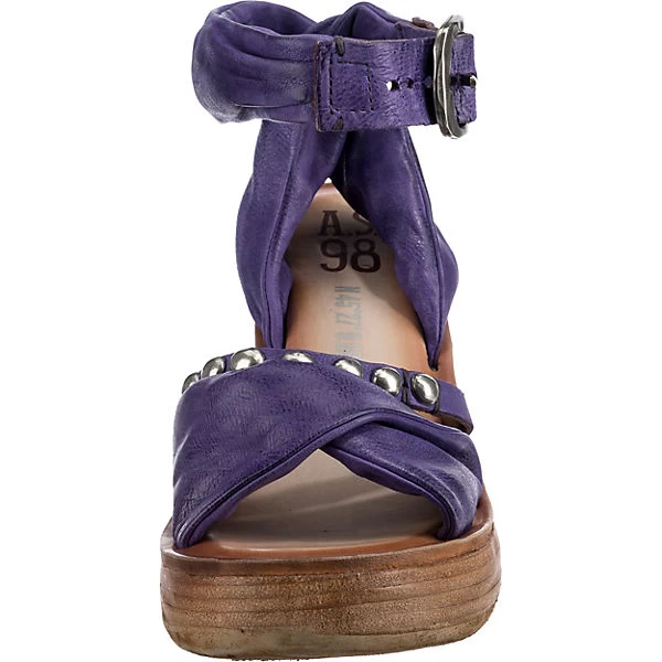 Diese Sandaletten aus dem Hause A.S.98 sorgen für einen besonderen Akzent. Für ein angenehmeres Trageerlebnis besteht die Decksohle aus Leder. Durch den Riemenverschluss kann die Schuhweite optimal eingestellt werden. Das Obermaterial zeichnet sich durch das feine, echte Rindsleder aus. Der Keilabsatz erzeugt eine zusätzliche modische Note.
