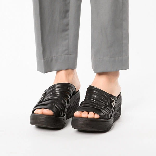 Die Sandaletten von der Marke A.S.98 setzen einen besonderen Akzent. Feinstes Rindsleder zeichnet dieses Modell aus. Der mittelhohe Keilabsatz sorgt für ein angenehmes Tragegefühl sowie einen ansprechenden Look. In die Schuhe kann ganz einfach hineingeschlüpft werden. Für ein komfortables Trageerlebnis besteht die Decksohle aus echtem Leder.
