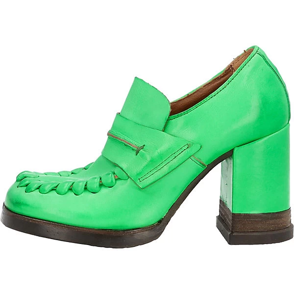 Penny-Loafer auf hohem, teilweise lederbezogenem Blockabsatz mit auffälliger Mokassinnaht
