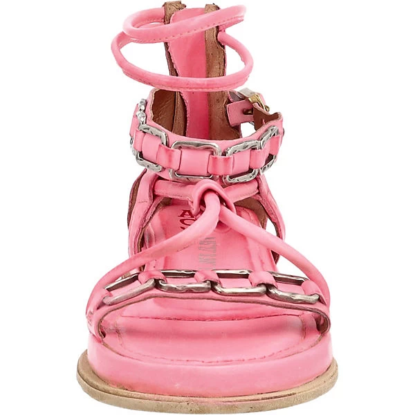 Riemchen-Sandalen auf weicher Innensohle mit Keilabsatz, geschlossener Fersenkappe mit Reißverschluss und zahlreichen Metallapplikationen