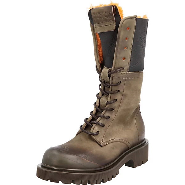 Vielseitiger Stiefel mit Schnürung im angesagten Materialmix auf besonderer Sohle mit Rillen und Lammfellfutter im Schaft