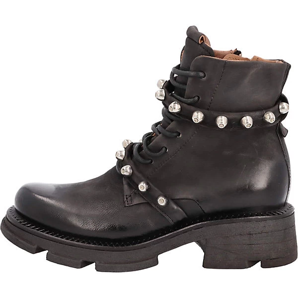 Rockige Schnürstiefeletten im Biker Look mit innenliegendem Zipper und nietenbesetzten Lederriemen auf derber Sohle