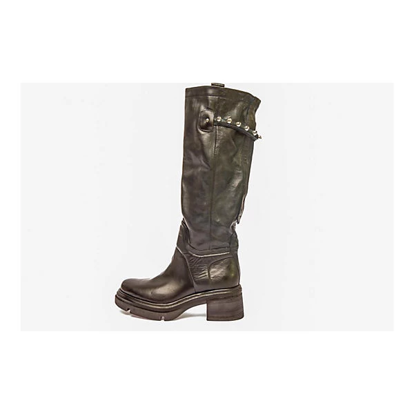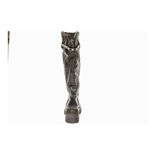 – robuster und trendiger Damenstiefel aus schwarzem Leder – am Schaft 1 Riemen mit Silberschmuck – beidseitige Einschlupfhilfe – hoher Tragekomfort – profilierte rutschhemmende Laufsohle
