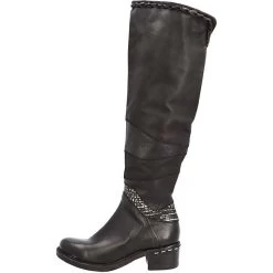 Hochwertige Stiefelette aus Leder mit Schaft in rockiger Wickeloptik, Schnallen an den Riemen und Draht im Schaft