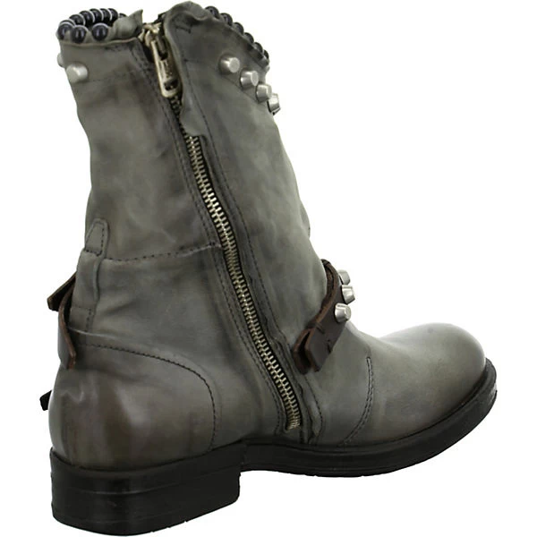 A.S. 98 Damen Stiefeletten VERTI Grau Glattleder – praktischer Reißverschluss – 2 Riemen mit Nieten über dem Spann und im Schaftbereich – Einstieg mit Nieten verziert – verstärkter Zehen- und Fersenbereich – gepolsterte Leder-Decksohle – flexible, rutschhemmende Laufsohle